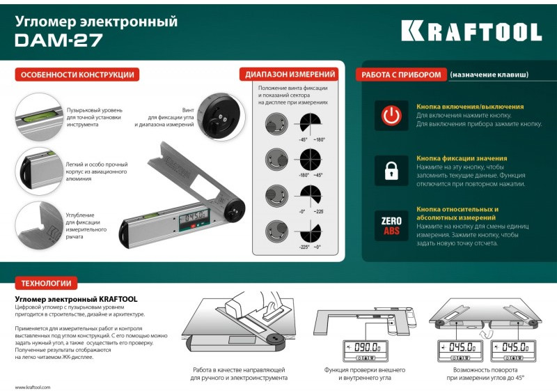 - Применяется для измерительных и разметочных работ и контроля выставленных под углом конструкций.