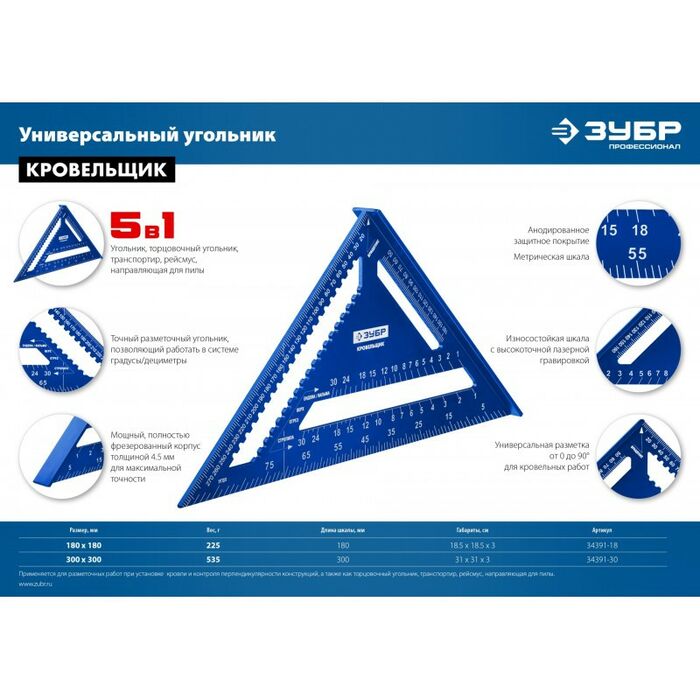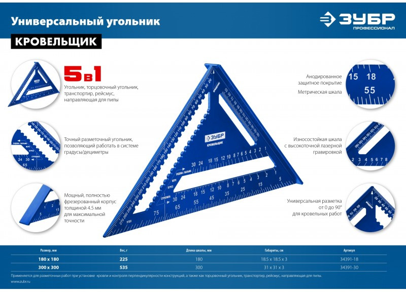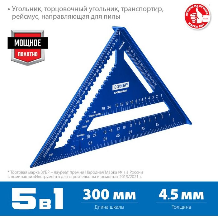 Универсальный кровельный угольник Зубр Кровельщик 300 мм 5-в-1 [34391-30]