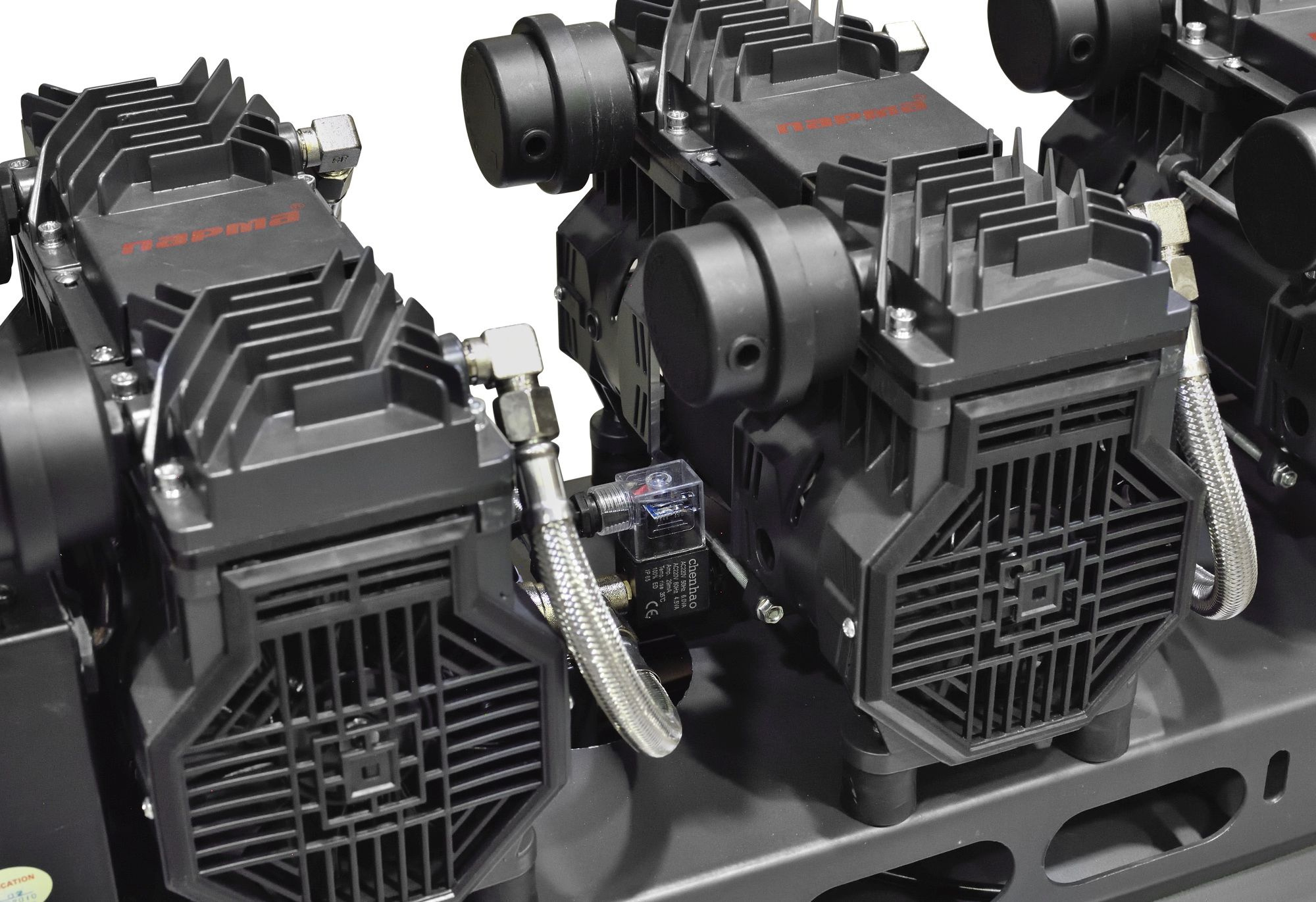 | Особенности | Трехмоторная, 6-цилиндровая компрессорная установка повышенной эффективности, последовательное включение двигателей в зависимости от расхода воздуха, электронное управление, низкий пусковой ток. |