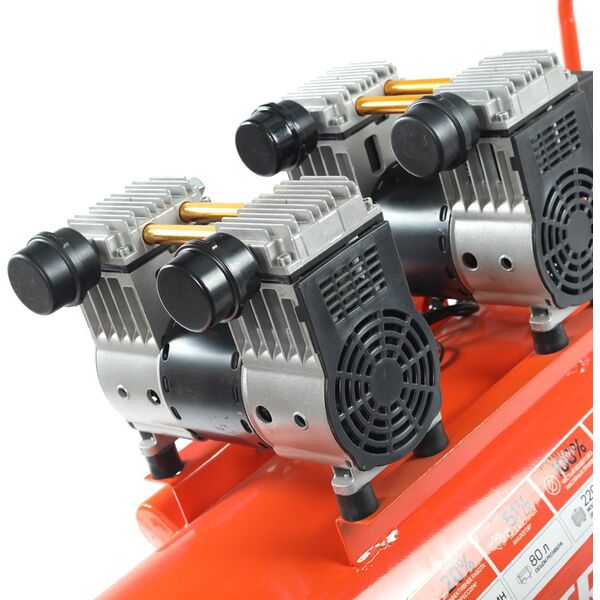 | Особенности | 100 % чистый воздух без масляных примесей, регулировка и контроль давления в ресивере и на выходе при помощи двух манометров. |