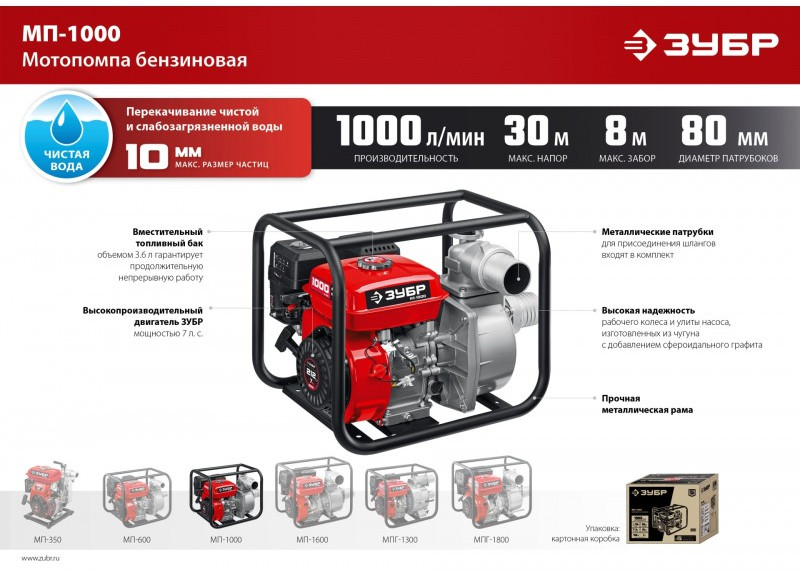 Оптимальное решение для организации полива или перекачивания воды, осушения подвалов во время половодья, для сдерживающего пожаротушения до приезда пожарной команды. Легкая и компактная, способна перекачивать до 1000 литров воды в минуту
