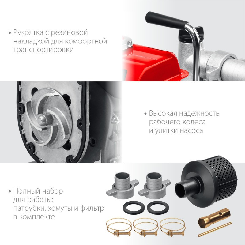 Небольшая, легкая, неприхотливая в использовании мотопомпа для чистой воды. Идеальный помощник в оперативном решении сезонных хозяйственных задач на приусадебном участке