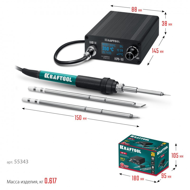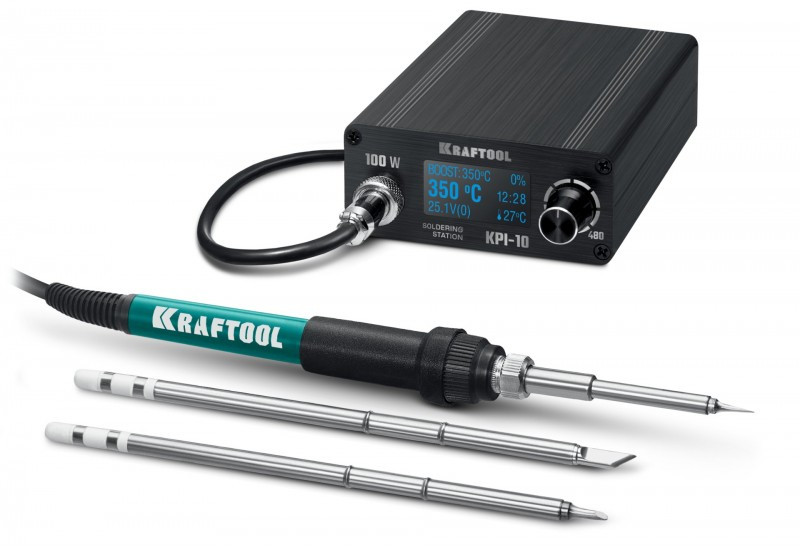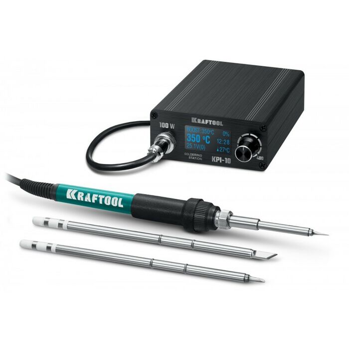программируемая паяльная станция KRAFTOOL KPI-10 50 - 480°C, 100 Вт, 3 жала Т12 [55343]