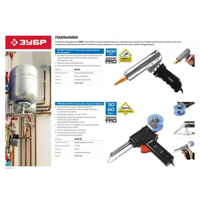 - Паяльное оборудование ЗУБР изготовлено из высококачественных современных материалов. Профессиональный подход и учет всех тенденций развития рынка обеспечивают высокую надежность и длительный срок службы.