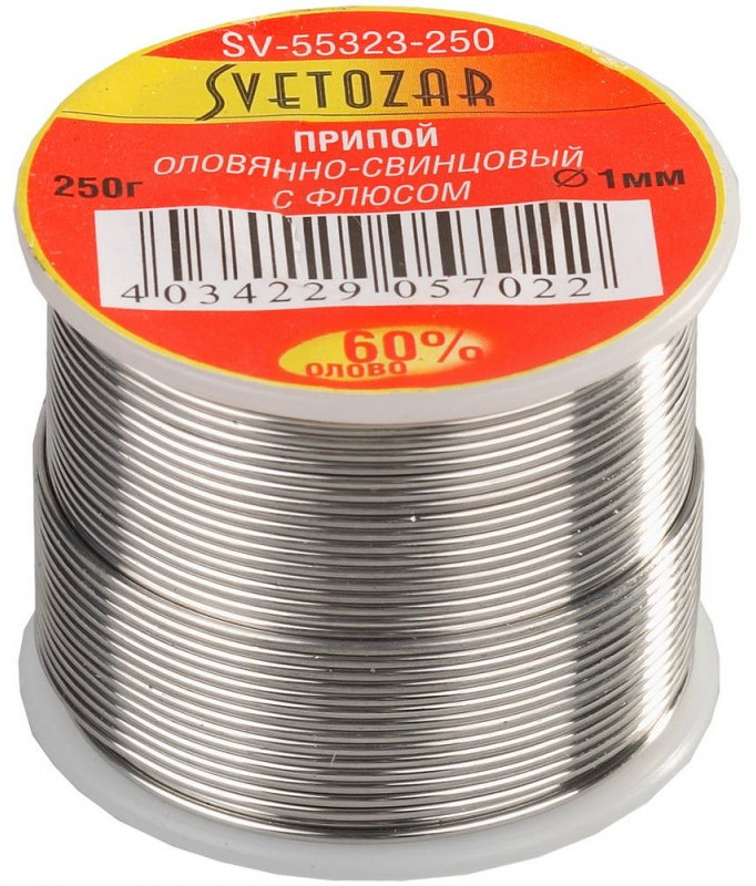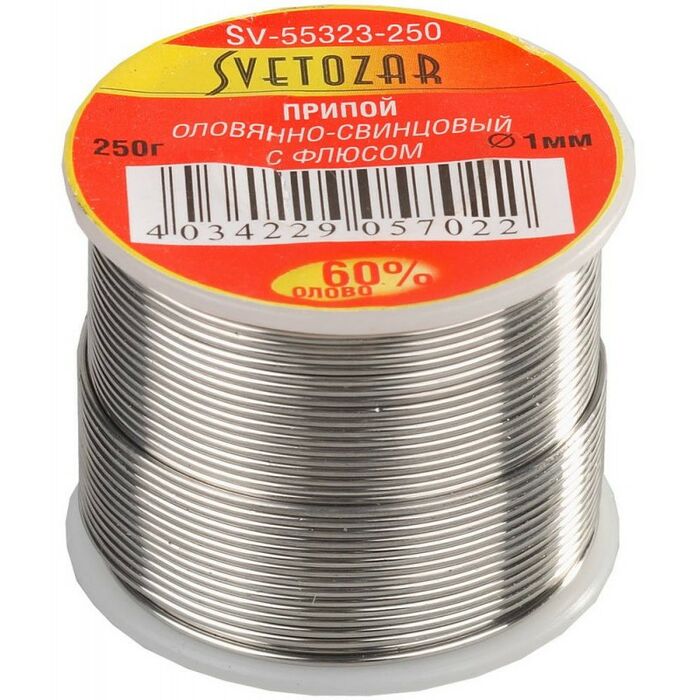 Припой СВЕТОЗАР СВЕТОЗАР ПОС61.1 мм 250г, трубка с флюсом, катушка [SV-55323-250]