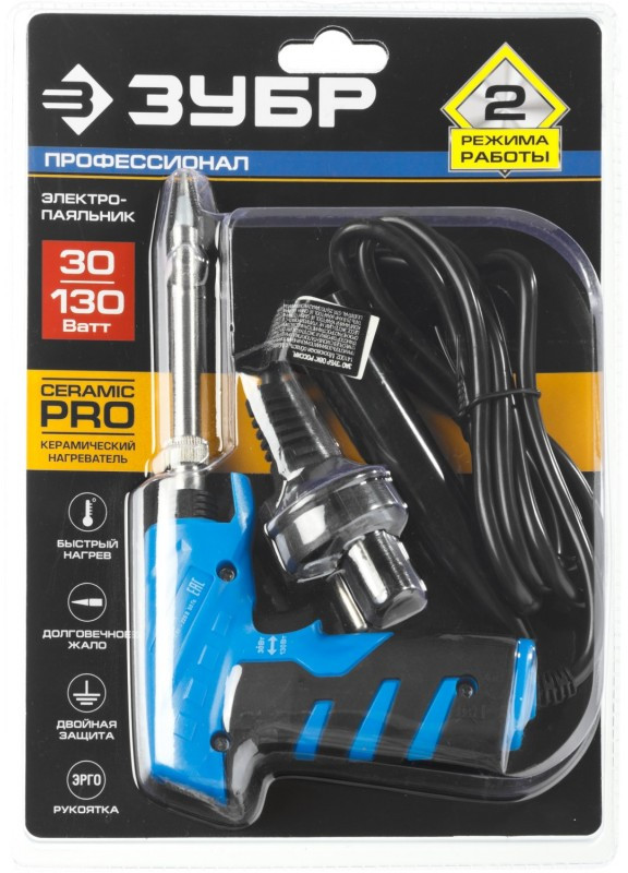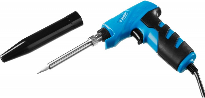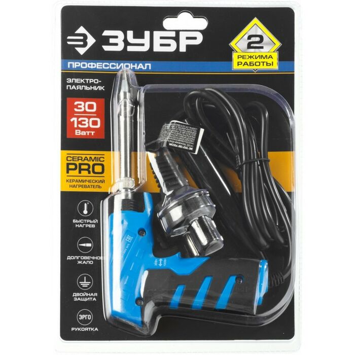 Электропаяльник Зубр ТУРБО 30Вт + 130Вт керамический нагреватель, конус, пистолетная рукоятка [55408]