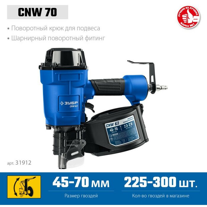 Пневматический нейлер Зубр Профессионал CNW-70 для барабанных гвоздей CNW (45-70 мм) [31912]