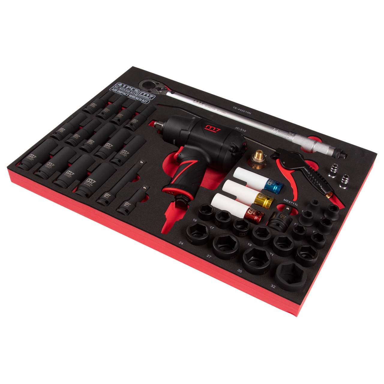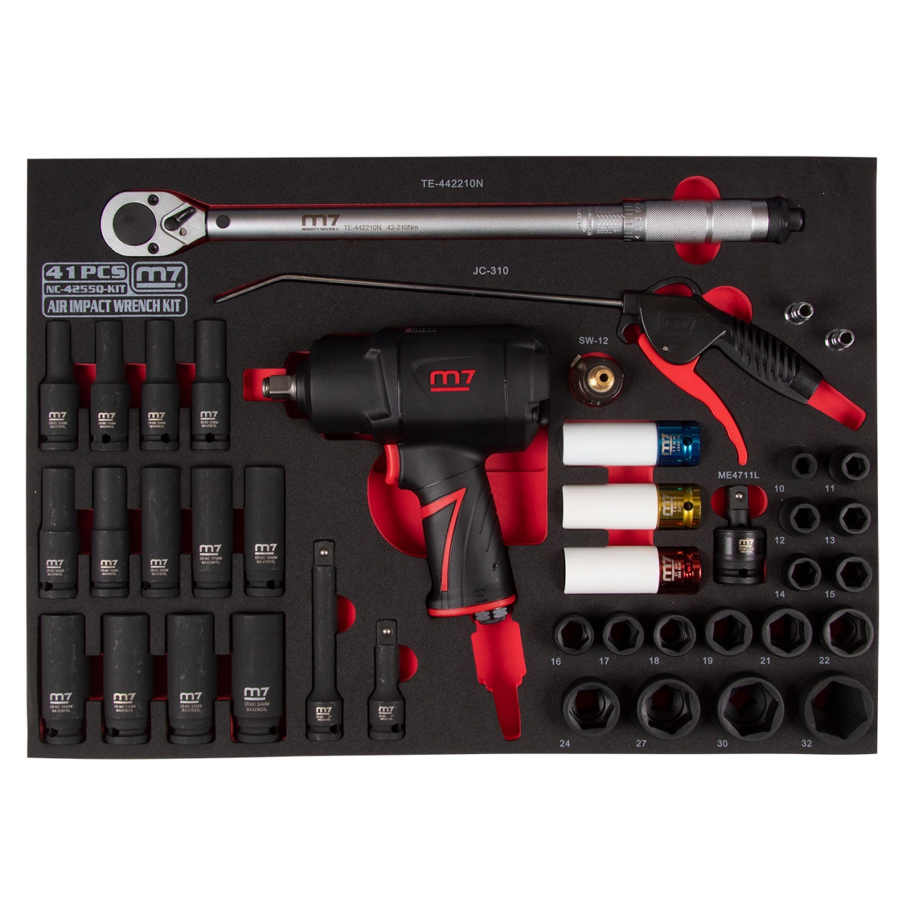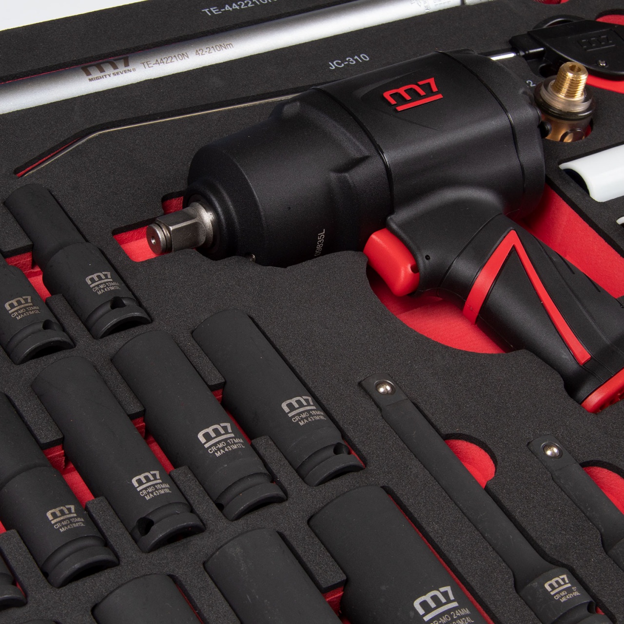 | Материалы | инструментальная сталь Cr-Мо (головки, удлинители, кардан), пластик (продувочный пистолет, защита головок), латунь, плексиглас (лубрикатор), EVA (ложемент) |