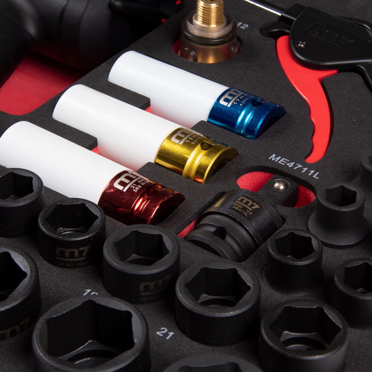 – Головки глубокие 17, 19, 21 мм с пластиковой защитой