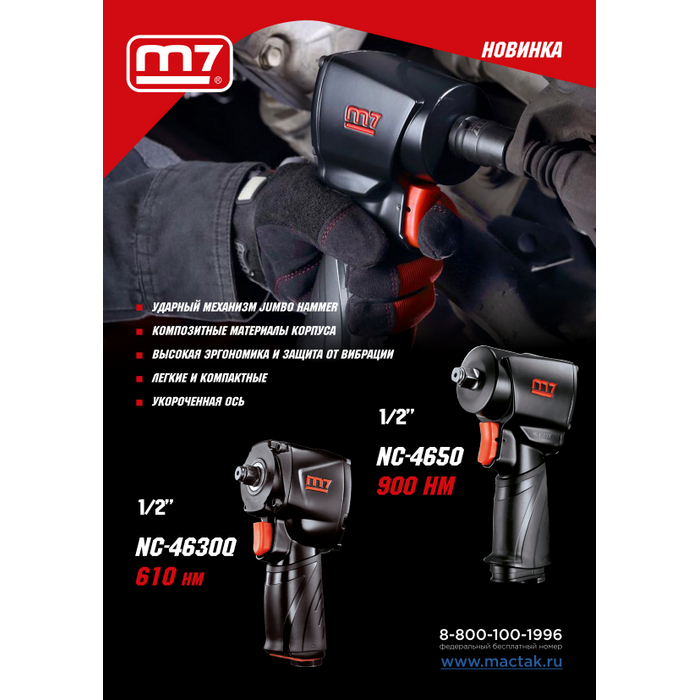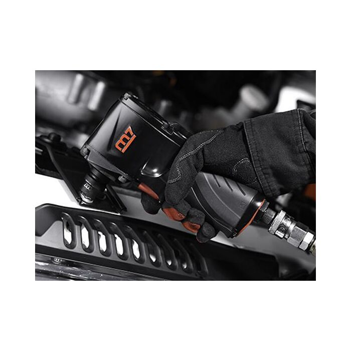Корпус гайковёрта – прочный алюминиевый сплав. Эргономичная рукоятка гайковёрта в сочетании с отличной сбалансированностью позволяет надёжно держать инструмент в руке во время работы.