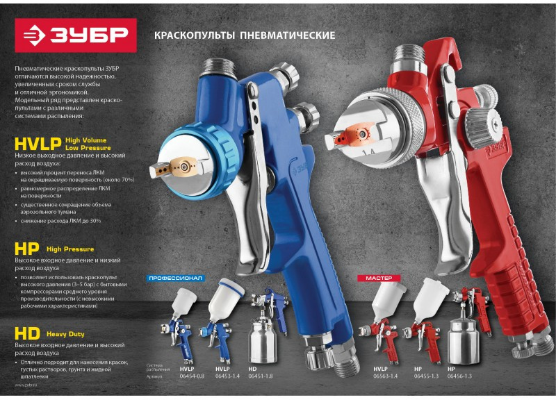 - Профессиональный пневматический краскопульт ЗУБР ″ПРО Н350″ - надежный инструмент для окрасочных работ в мастерских на специализированных предприятиях, отличающийся точностью и долгим сроком службы