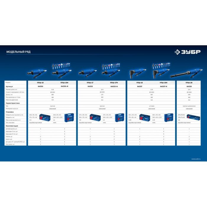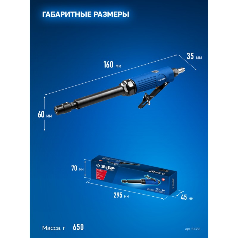 Прямая удлиненная цанговая пневмошлифмашина Зубр 64335 ПРОФЕССИОНАЛ