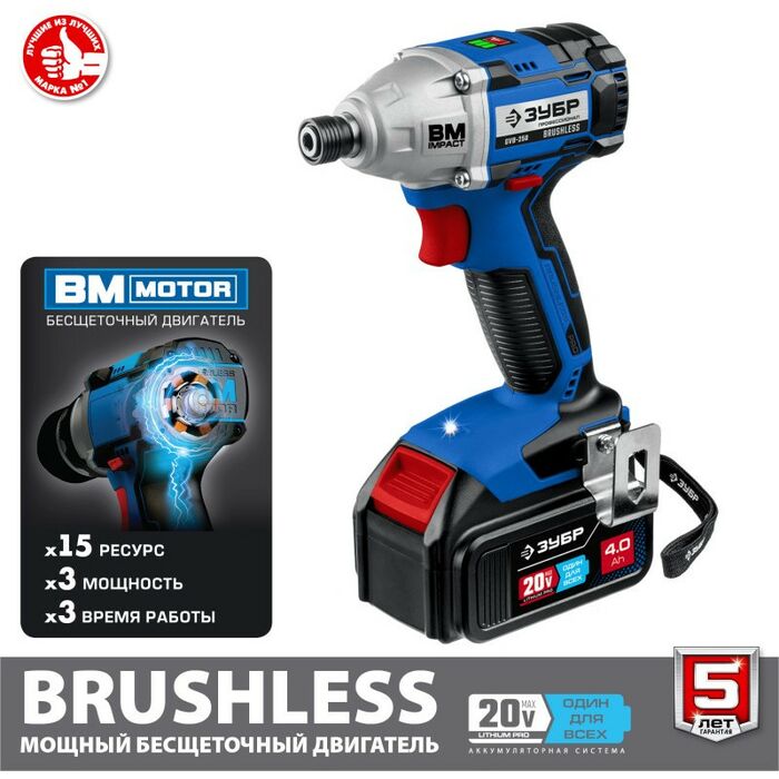 Бесщеточный винтоверт Зубр Профессионал GVB-250-42 20В, 2 АКБ (4Ач), в кейсе