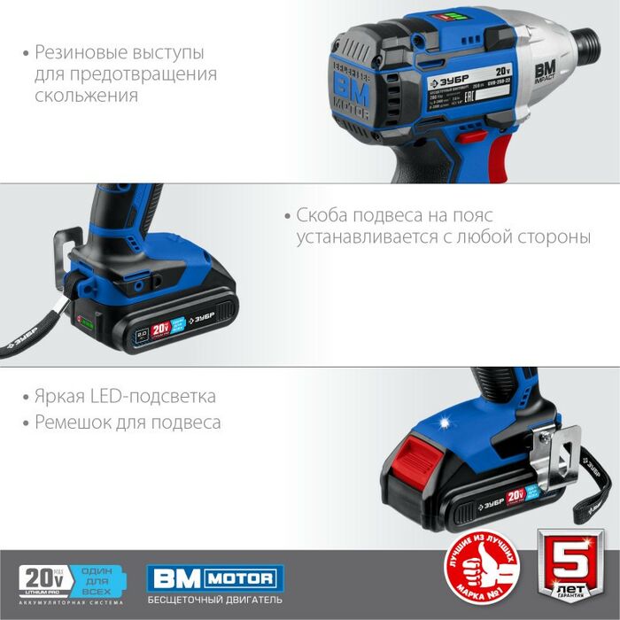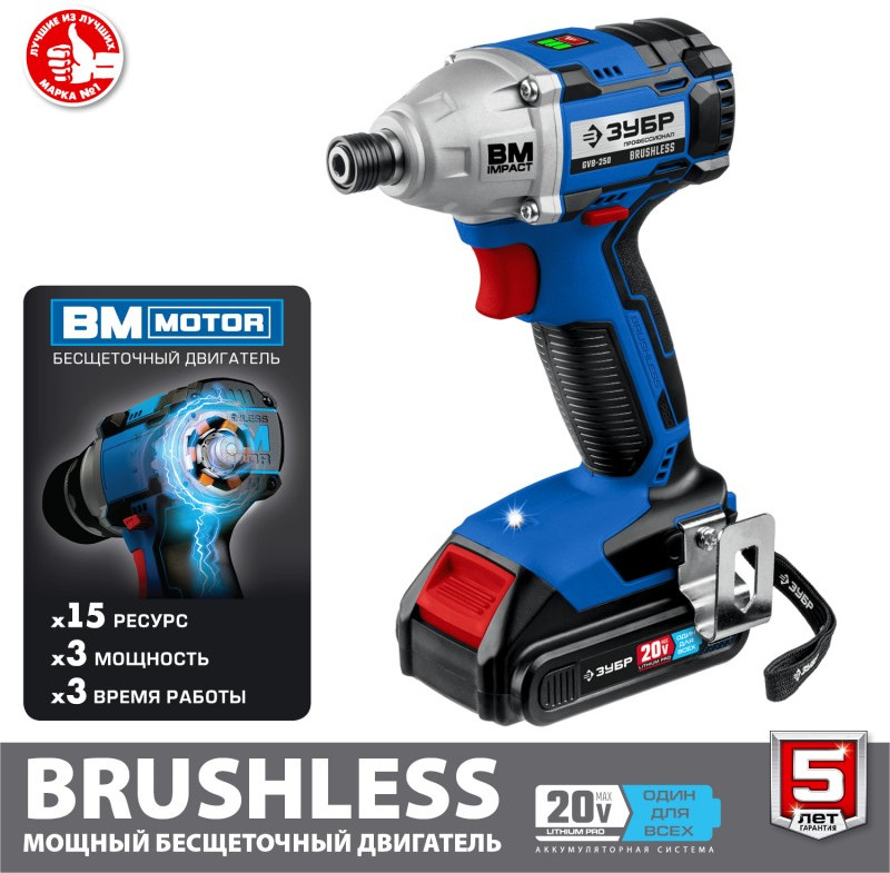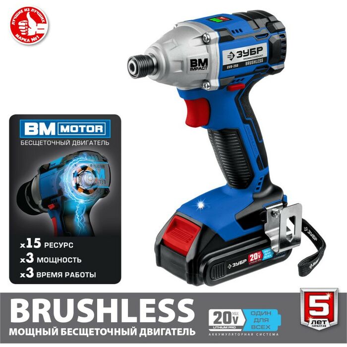 - Профессиональный винтоверт оснащен BRUSHLESS двигателем, который обеспечивает высокие удельные характеристики и производительность благодаря двум батареям в комплекте. Точное управление параметрами двигателя позволяет ему постоянно работать в наиболее оптимальном режиме, регулировать крутящий момент, реализовывать дополнительные рабочие функции