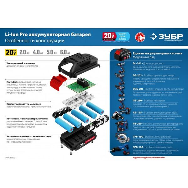 - Источник питания для шуруповерта ЗУБР с увеличенной емкостью позволит Вам работать еще дольше и производительнее. Современные Li-Ion элементы профессиональной серии гарантируют превосходные технические характеристики, надежность и результат