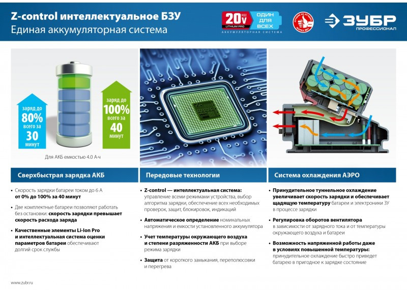 • Универсальное устройство с быстрой зарядкой и принудительным охлаждением. Высокая скорость зарядки позволяет сократить время простоя, что особенно важно для профессионалов