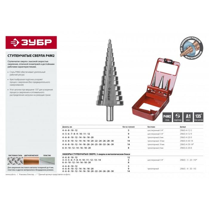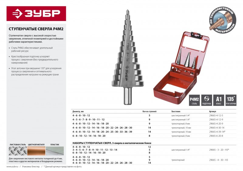 - Множество диаметров в одном сверле для сверления различных листовых материалов