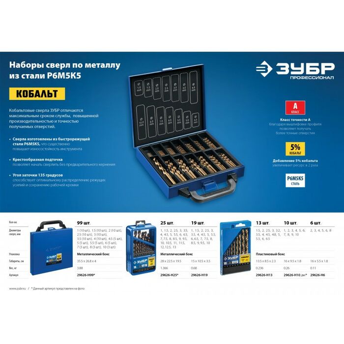Описание Зубр КОБАЛЬТ 25шт(1-13мм)