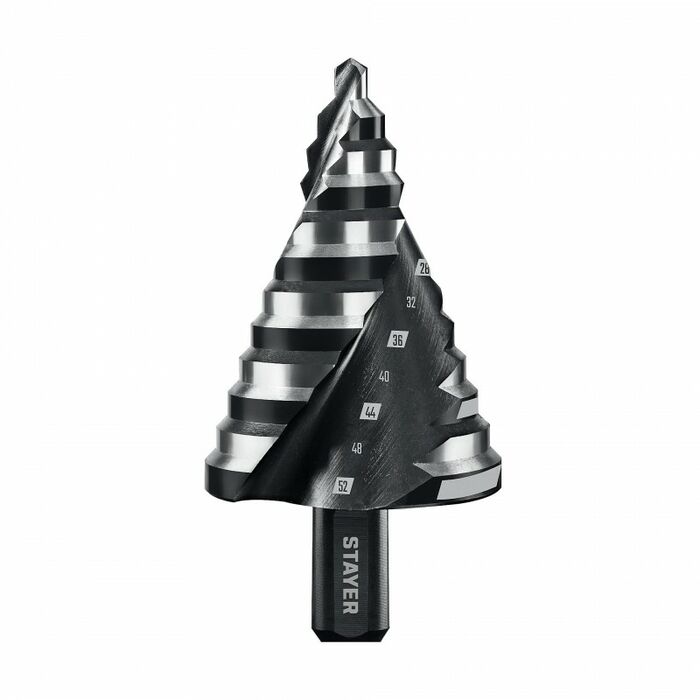 Инструмент STAYER — это не просто сверло, это ваш надежный партнер в мире сверления! Благодаря проверенной временем технологии, вы можете быть уверены в том, что каждое отверстие будет выполнено с максимальной точностью и профессионализмом. Сверление ровных отверстий различного диаметра с одним сверлом — это реально!