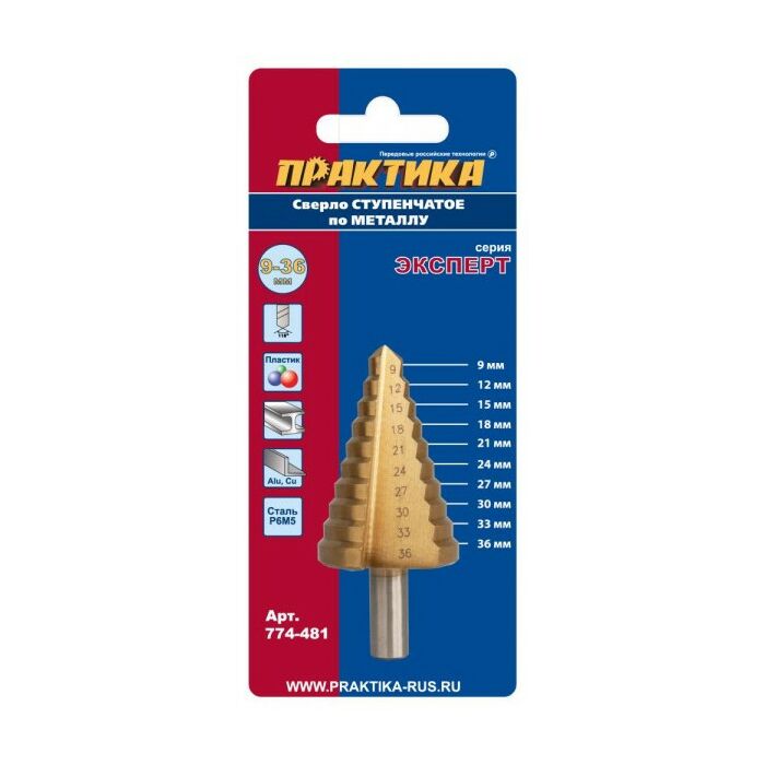 Сверло Практика 774-481 по металлу, ступенчатое, 9-36 мм, шаг 3 мм
