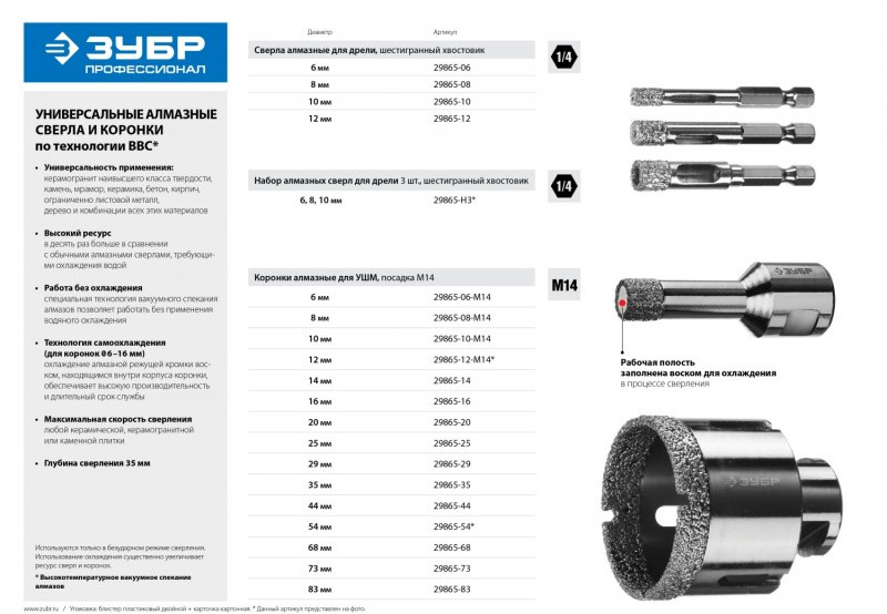 Алмазные вакуумные коронки ЗУБР - синтез опыта и высоких технологий для превосходных результатов работы.