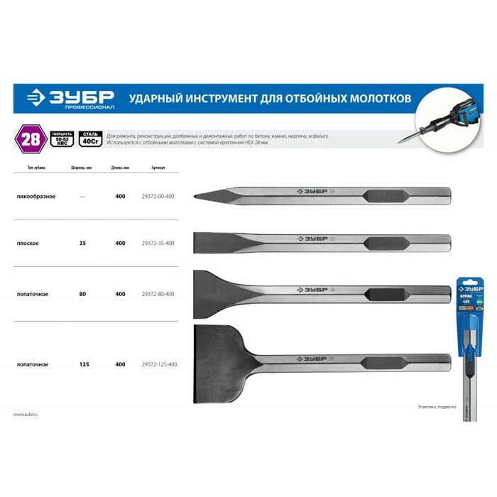 - Зубила ЗУБР - ударный инструмент высокого качества и надежности обладающий высокой стойкостью к любым нагрузкам.