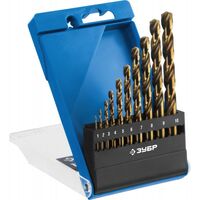 Набор сверл по металлу Зубр ТИТАН 29617-H19 19шт(1-10мм), сталь Р6М5, класс А , титановое покрытие, мет.бокс