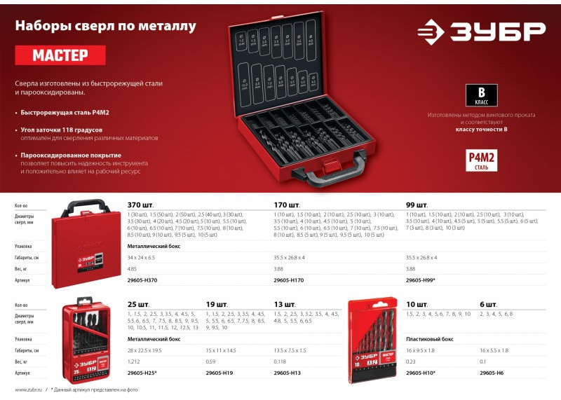 Наличие товара Зубр МАСТЕР 370шт 1-10мм [29605-H370]