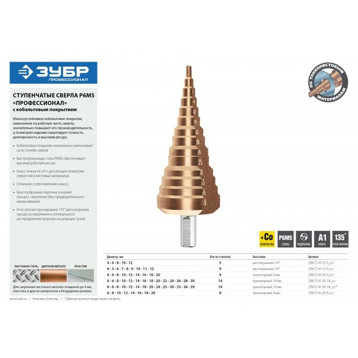 Описание Зубр Профессионал КОБАЛЬТ 6-20мм [29672-6-20-8]