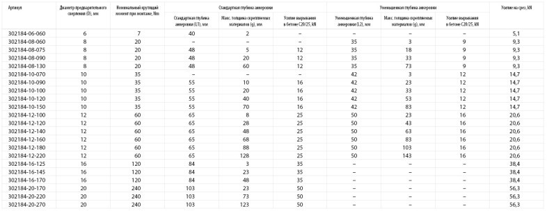 - Уменьшенная глубина анкеровки, мм: 50