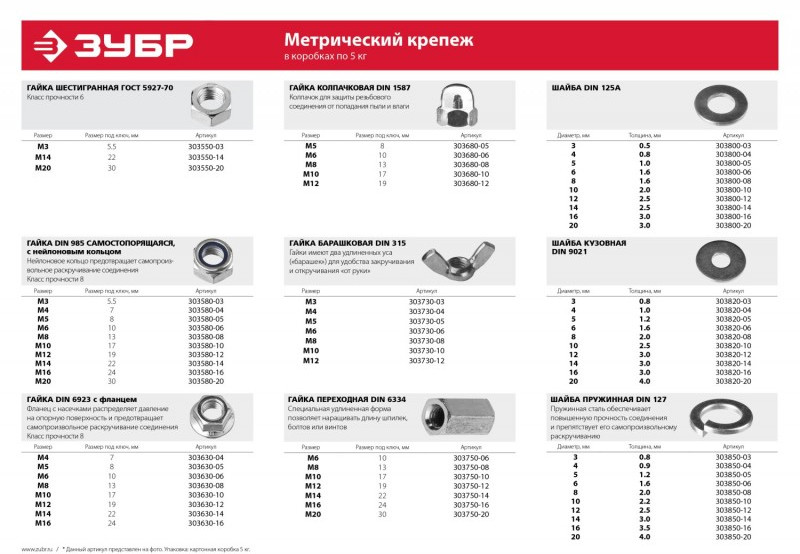 Гайка Зубр M12 ГОСТ 5927-70, , 5 кг, кл. пр. 6, оцинкованная [303550-12]
