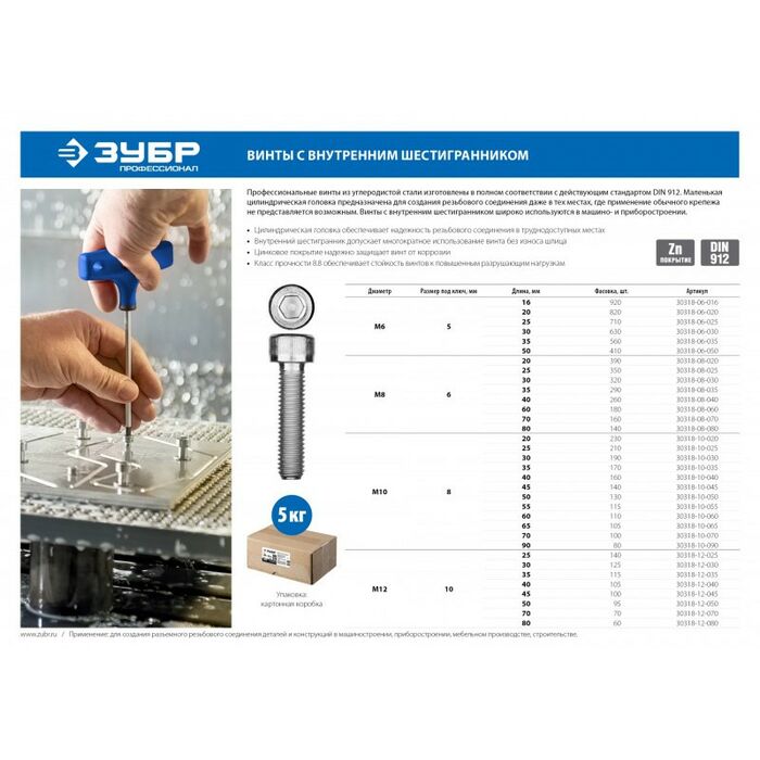 - Внутренний шестигранник допускает многократное использование винта без износа шлица