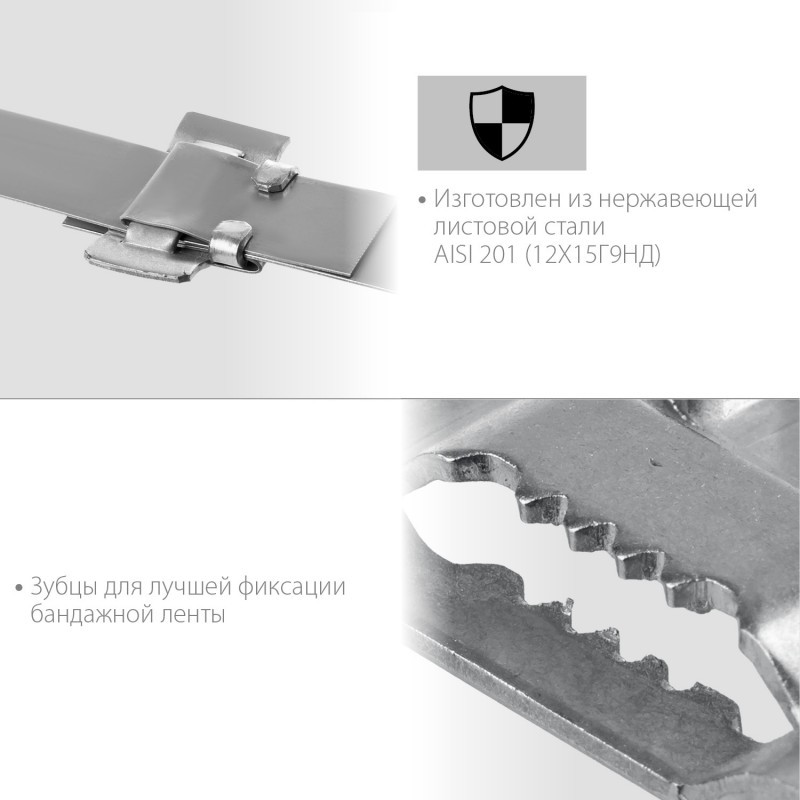 • Зубцы для лучшей фиксации бандажной ленты