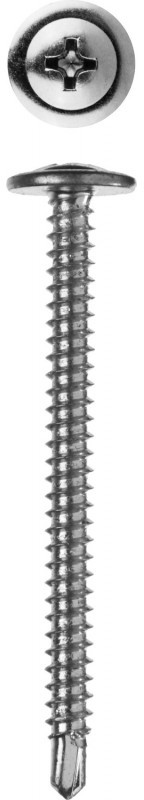 - Саморезы с пресс-шайбой и сверлом для листового металла изготовлены из стального прутка с высоким содержанием углерода. Контроль за геометрией самореза начинается с калибровки прутка и заканчивается тщательной проверкой размеров готового изделия. Нормативная твердость стали достигается термической обработкой. Поверхностная твердость 560-720HV, твердость в сердцевине 240-425HV. Саморезы легко вкручиваются обычным шуруповертом или отверткой с крестообразным шлицем PH2 (DIN). Предварительное сверление в скрепляемых материалах не требуется. Геометрические размеры: диаметр пресс-шайбы (W) - 10.5-11.0мм, диаметр головки (Dk) - 6.5-7.0мм, диаметр резьбы (D) - 4.04-4.22мм, диаметр сверла (dp) - 3.1-3.2мм, длина сверла (ds) - 3.7-3.8мм, шаг резьбы (Pi) - 1.41мм.