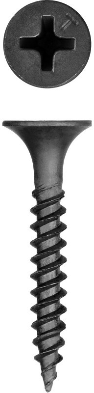 - Частый шаг резьбы обеспечивает надежное крепление гипсокартона к металлическим профилям или твердым породам дерева.