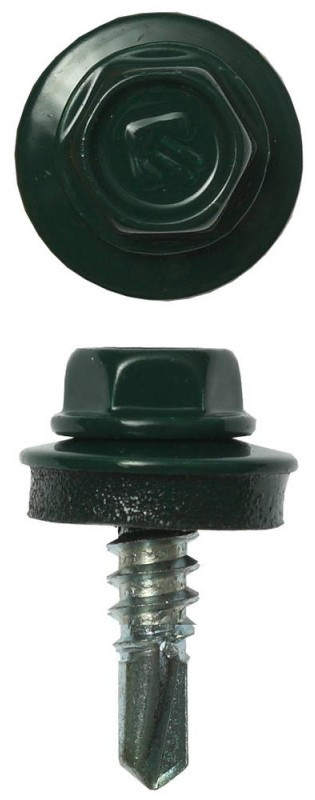 Саморезы СКМ кровельные Зубр Профессионал 19 х 5.5 мм RAL 6005 зеленый насыщенный, 2 500 шт, для металлических конструкций [4-300310-55-019-6005]