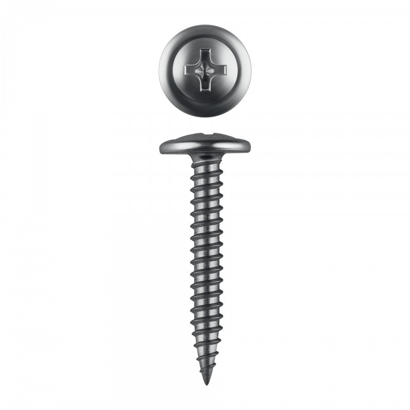 Поверхностная твердость 550-720HV, твердость в сердцевине 240-450HV. Саморезы легко вкручиваются обычным шуруповертом или отверткой с крестообразным шлицем PH2 (DIN). Предварительное сверление в скрепляемых материалах не требуется. Геометрические размеры: диаметр пресс-шайбы (W) - 10.5-11.0мм, диаметр головки (Dk) - 6.5-7.0мм, диаметр резьбы (D) - 4.1-4.3мм, шаг резьбы (Pi) - 3.38мм.