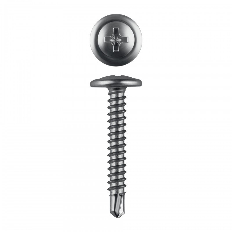 Саморезы с пресс-шайбой и сверлом для листового металла изготовлены из стального прутка с высоким содержанием углерода. Контроль за геометрией самореза начинается с калибровки прутка и заканчивается тщательной проверкой размеров готового изделия.