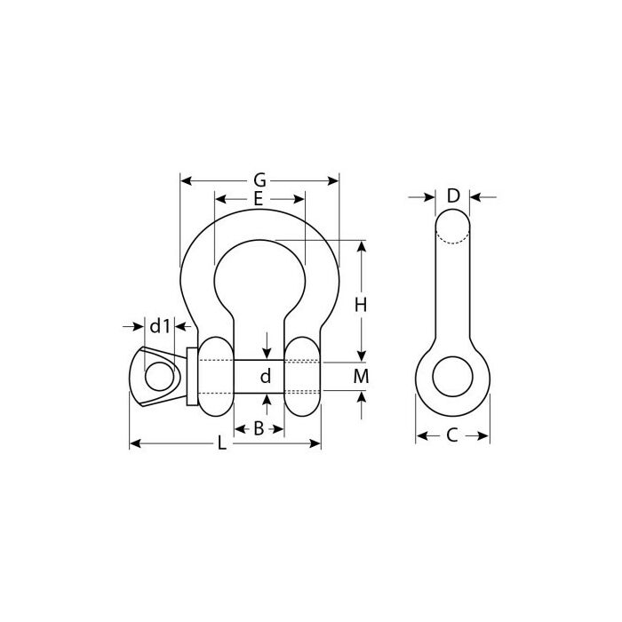- Омегообразная форма облегчает использование скобы при многоплечевом устройстве такелажа