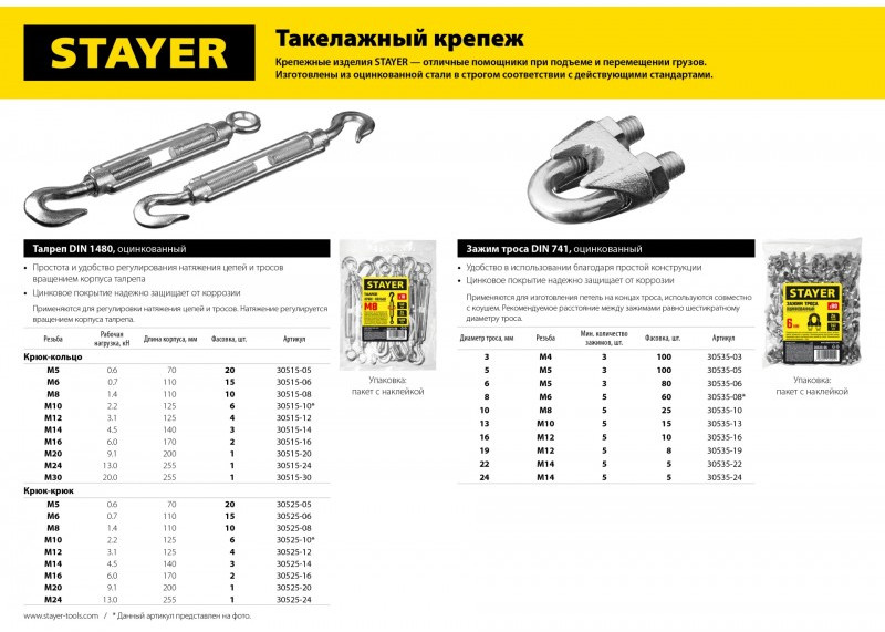 Талрепы STAYER изготовлены из оцинкованной стали в строгом соответствии с действующими стандартами