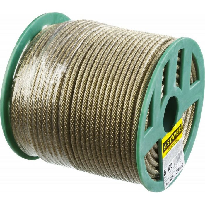 Трос стальной в полимерной оболочке STAYER d=5,0 мм, L=100 м [30410-50]