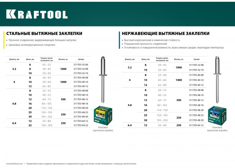 Наличие товара KRAFTOOL Inox 4.8 х 30 мм