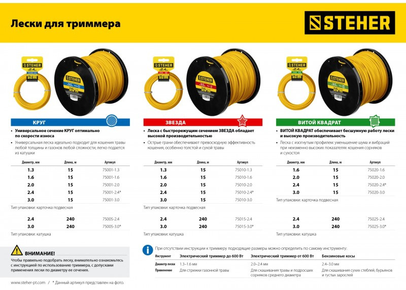 - Использование: для кошения травы при установке в катушки триммеров (электрических и бензиновых)