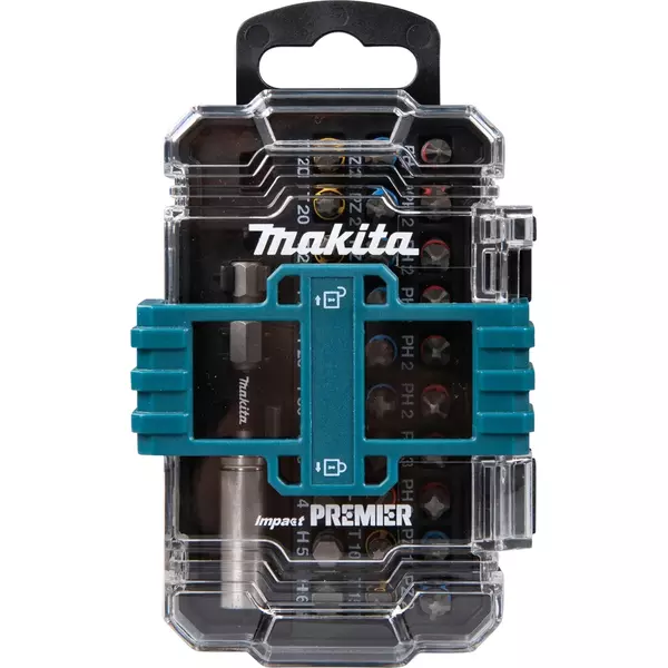Биты 25 мм: PH1, 5x PH2, 2x PH3, PZ1, 5x PZ2, 2x PZ3, T10, T15, 3x T20, 2x T25, 2x T30, H4, H5, H6, SL4, SL6 магнитный держатель бит 60 мм.