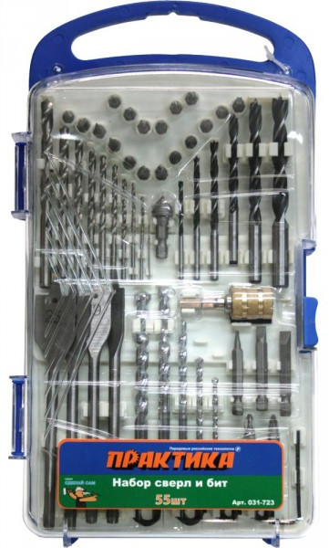 - Общий состав набора: биты 23 шт., держатель с фиксатором, зенкер, ключ для колец, ограничительное кольцо 4 шт., сверла 25 шт.