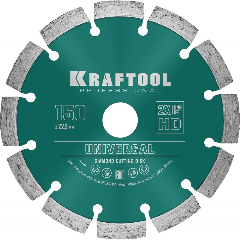 Диск алмазный отрезной сегментный KRAFTOOL UNIVERSAL 150 мм по железобетону, высокопрочному бетону [36680-150]