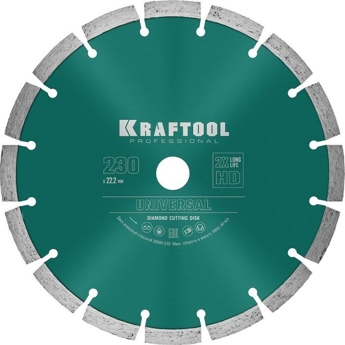 Диск алмазный отрезной сегментный KRAFTOOL UNIVERSAL 230 мм по железобетону, высокопрочному бетону [36680-230]