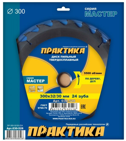 Диск пильный по дереву Практика 030-528 диаметром 300 мм.