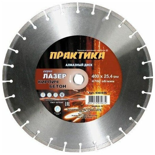- Серия специализированных дисков для профессионального применения на ручных бензорезах, настольных пилах, швонарезчиках. Сегменты приварены лазером. Рекомендовано использование на оборудовании с линейной скоростью вращения до 100 м/с. Четыре увеличенных сегмента защищают тело диска от износа.