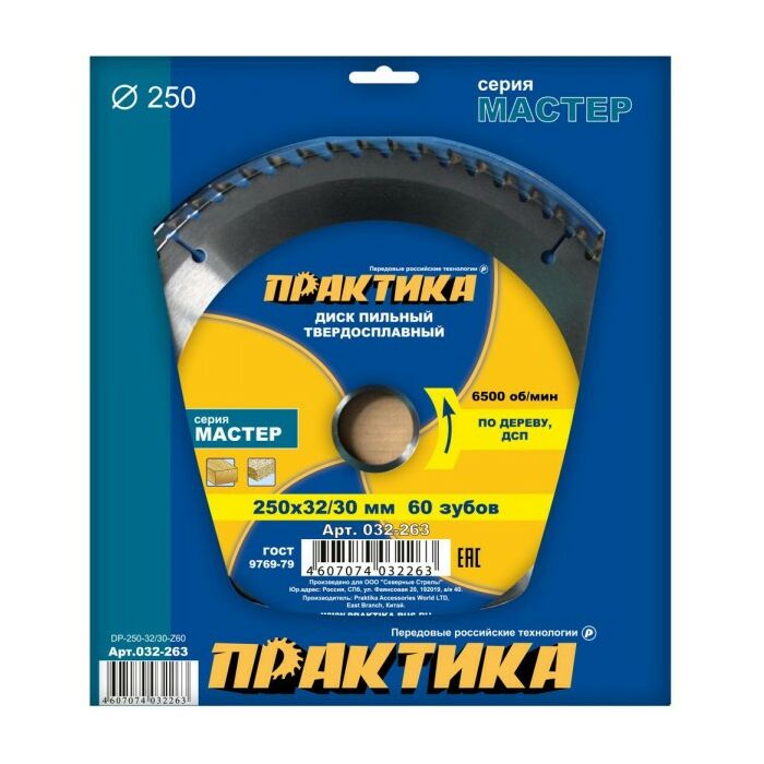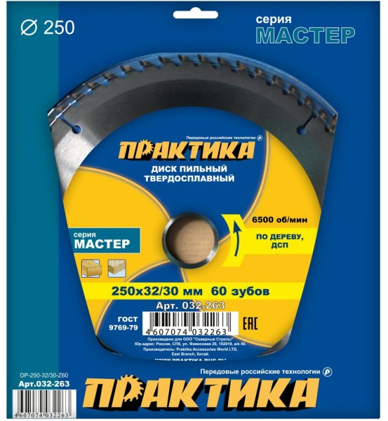 Диск пильный по дереву Практика 032-263 диаметром 250 мм.